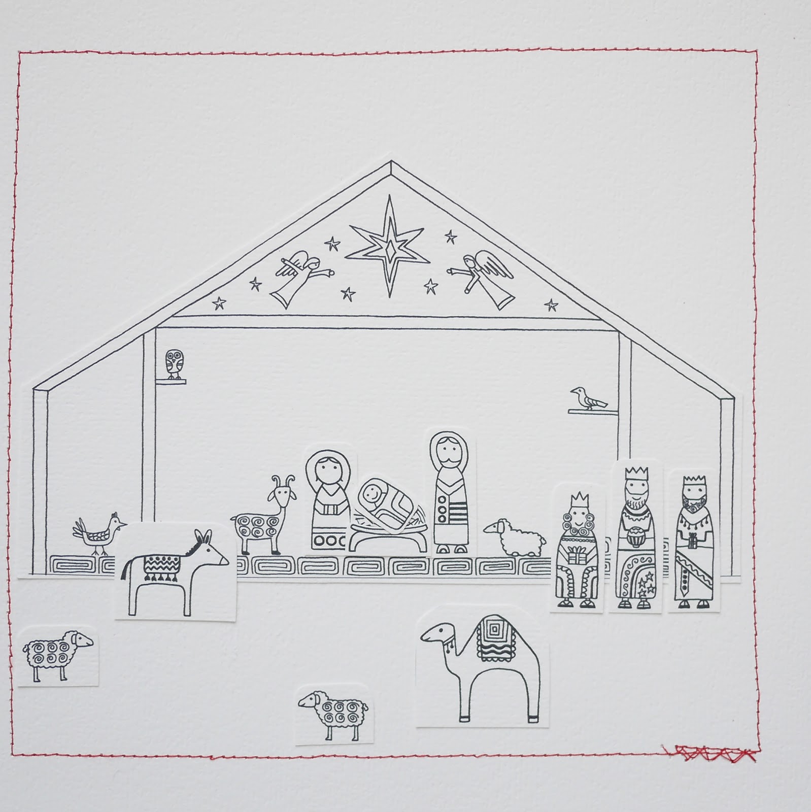 On the left page I made a little nativity scene with some drawings I found online. It's made for kids to play, but I found it so sweet that I wanted to use it in my album. :)